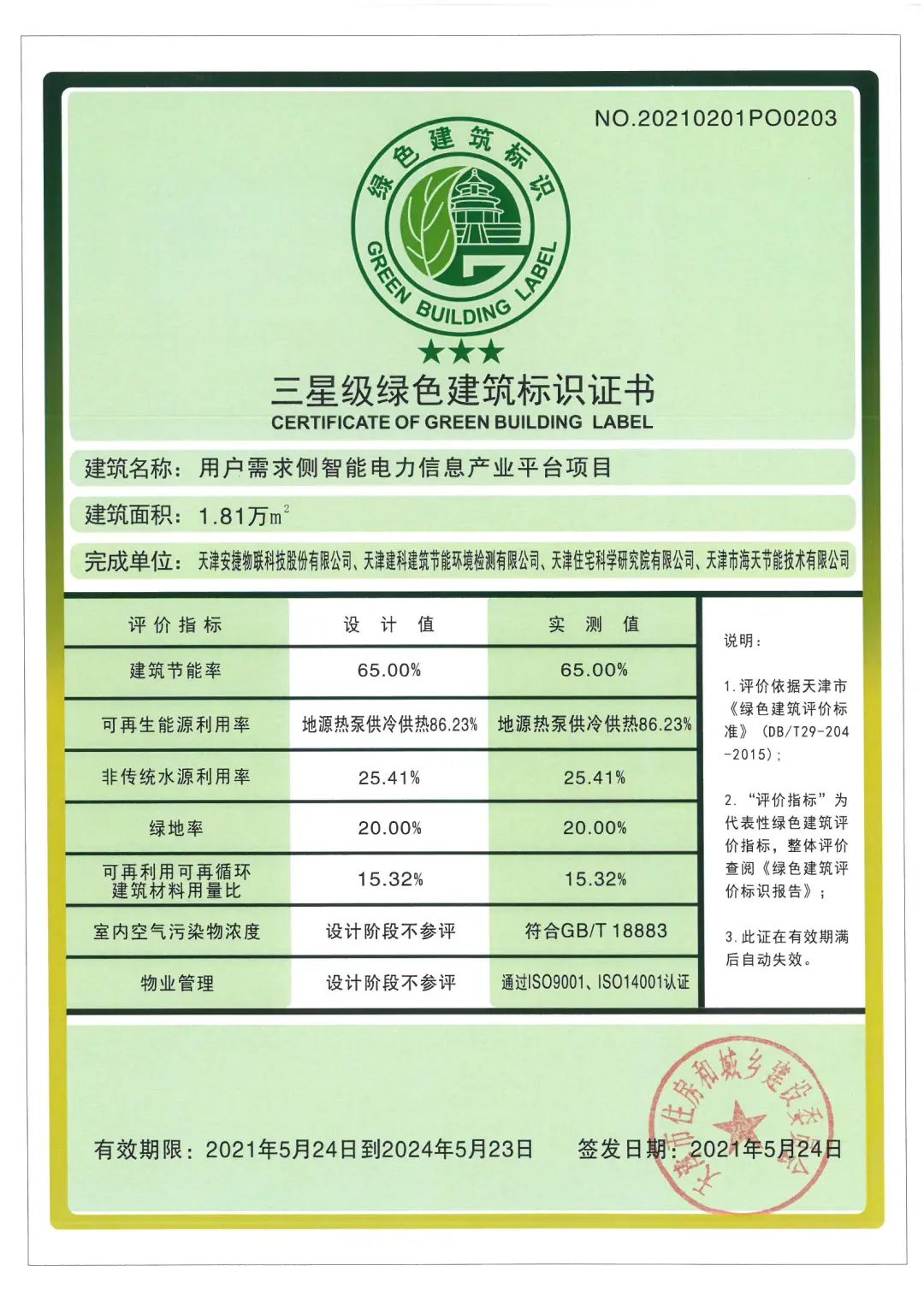 喜訊|安捷物聯(lián)榮獲“三星級(jí)綠色建筑運(yùn)行標(biāo)識(shí)證書”